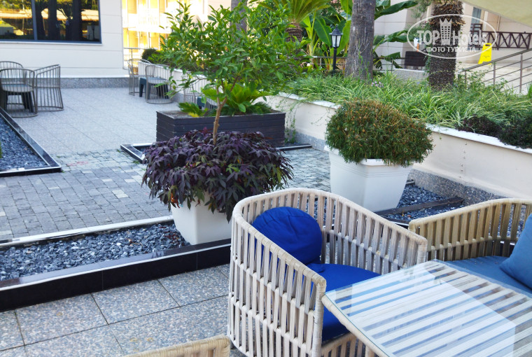 Отдыхали в июле 2025 года. Ехали от аэропорта Анталии 2,5 часа, в отели были в 16 часов. Сразу заселили. Номер прекрасный, свежий ремонт, полотенца и постельное белье хорошего качества, жили в главном корпусе на 5-ом этаже, вид с балкона на море, просто бомбический. Уборка ежедневно. Персонал старается, деньги никто не вымогал. Единственно в кофейне работают уж очень не приветливые девушки, понятно, что отдыхающих много и им тяжело, но улыбку на лицо надо натягивать. Отель заполнен на сто процентов, но очередей, нехватки лежаков или столиков в ресторане нет. Территория компактная, но все продумано. Вообще территория мне понравилась, много зон отдыха, где можно посидеть, все красиво оформлено.