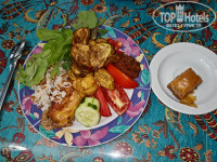 Расположение до моря - 7 минут пешком. Лежаки после 10 часов все заняты. Вход в море - в тапках. Обед очень рано - в 12 часов. Если прийти к часу, то можно остаться без основного блюда. Многие набирают себе столько, сколько не могут съесть, другим не достаётся и идёт в помойку. Иногда персонал регулирует раздачу основных блюд на обеде и ужине и вероятность съесть основное блюдо возрастает. Самый скудный - это завтрак. Каши за 7 дней не было ни разу и наверное не было никогда. Можно наложить хлопьев с молоком и добавить туда местного варенья для сладости. За неделю на завтрак один раз дали яичницу. Обед и ужин более разнообразны. Голодными не останетесь.