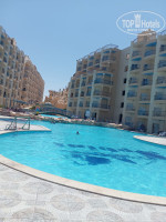 Территория не очень большая, но ухоженная, красивая и уютная. Есть детский клуб, мини-зоопарк, магазинчики, волейбольная площадка, футбольное поле, аквапарк, бассейны для малышей и взрослых, после обеда в них особенно комфортно, тк они находятся в тени.