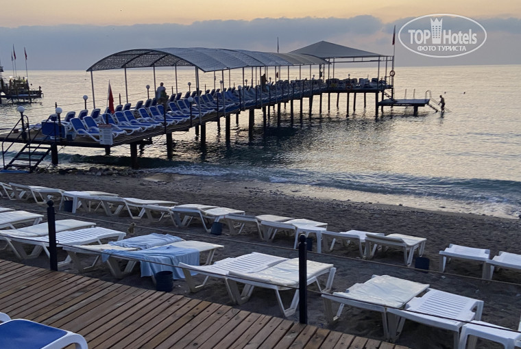 Вернулись только вчера из Турции . Отдыхала с сестрой с 31.07-07. 08.2025г. Заселили нас сразу по приезду в 10-00ч , без всяких доплат .Если честно отель не тянет на 5* , как он себя позиционирует. Это твердая 4* . Несмотря на отремонтированные номера . Отель требует хорошего качественного ремонта. Кондиционирование в холлах и на ресепшене вообще никакое. Душевые в SPA зоне это просто ужас. Жаль , что не сделала фото. Санузлы по дороге на пляж тоже требуют и ремонта и качественной уборки . А так в целом обслуживание хорошее, приветливое. Качество еды отлично. Хвала шеф повару . Ассортимент блюд разнообразный. Перечислять не буду. Но рыба была несколько видов , мясо и птица. Фрукты тоже радовали ассортиментом. Алкоголь , пиво, коктейль на хорошую 4. Территория отеля не большая , но вся в зелени, ухоженная. Мы вставали на рассвете и шли купаться, а места на пирсе уже были заняты 😊по ходу люди загнивают их еще ночью. А так на пляже всегда можно найти свободные шезлонги. Рекомендую посетить SPA. Сауну, хамам, отличный релакс. Массаж. Администратор Татьяна все Вам расскажет и по рекомендует те или иные процедуры для здоровья. Мы хотим поблагодарить и рекомендовать массажистов Адама и Серхата за их профессионализм!!! Качество отдыха смело могу оценить на 5 . Да если,кому нужен шопинг напротив отель есть магазинчики. Аптека, где очень хорошо говорят по русски . И принимают оплату не только в валюте , но ив рублях. Лучше из валюты брать $.
