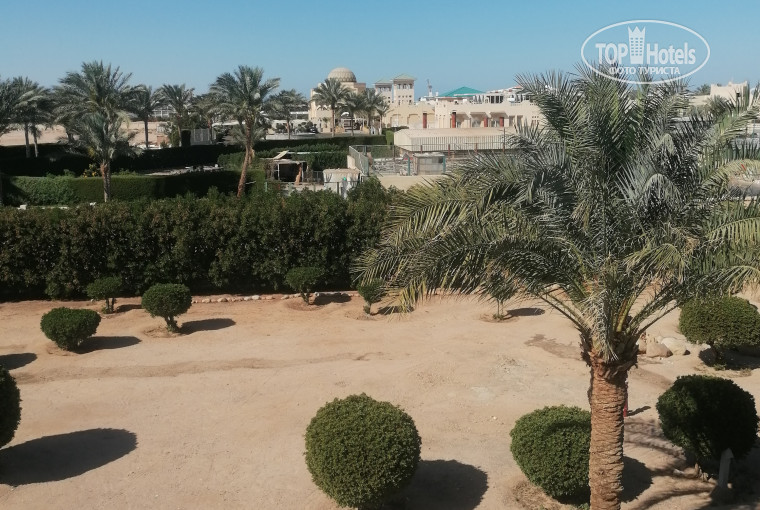 Сад, куда по описанию выходили окна номера, это 2,5 пальмы и немного травы. Между нашим и соседнем отелем располагается какое-то производство, доносятся звуки как от распила камня, и ежедневно в 17 часов, видимо, происходит уборка, от мастерской поднимается огромное облако пыли, и остается только надеется, что ветер отнесет его в другую сторону.
