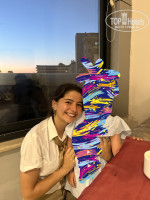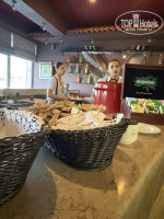Еда -достаточно разнообразный шведский стол, но практически не менялась за весь период. Только на ужин устраивали то вечер пасты, то морской/рыбный (мы не видели никаких анонсов и рыбный ужин почти пропустили, а он за 3 недели было 2, и оба пропущены, поскольку самое интересное в самом начале ужина, потом не пополняют) и хотели предложить устраивать ещё и день славянской/русской кухни (соскучились по борщу, оливье и т.д.). Очень зрелищно готовят прямо во время ужина: паста из головки сыра, рыба и другие блюда. Очень красиво все представлено и украшено. Всегда были представлены в разных салатах и нарезке свежие овощи и фрукты. Разнообразие выпечки и вкусностей очень большое. Бывали очереди за самыми популярными блюдами (панкейками на завтрак и мясом на ужин). Столов достаточно много, есть и на свежем воздухе у бассейна (для курящих). Везде холодильники с порционной водой (200 мл), что очень удобно. Дополнительно перекусить можно практически в любое время, либо в лобби, либо на пляже.