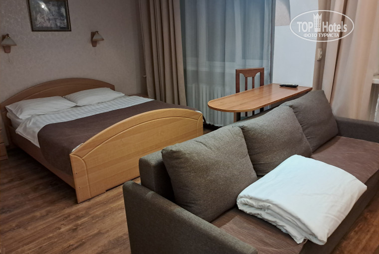 Номер понравился. Фото нашего номера приложила. В отеле внутри и рядом было тихо, соседей не слышали, только если сильно хлопнули дверью. В номере в прихожей есть небольшой холодильник с морозилкой, шкаф для одежды с обувницей, тумбочка, лежало две салфетки для ухода за обувью. На входе в отель видели приспособление для чистки обуви. Первый отель, где нам хватило вешалок))) Телевизор, кондиционер. Два окна, на одном была москитная сетка, на другом нет. Лежал фумигатор и пластины от комаров, но комаров не было. Две люстры: свет в зоне с диваном ( перед ним лежит коврик) и над кроватями раздельный. Над кроватью ещё два светильника. Удобно. Две прикроватные тумбочки. Постель хорошая. Нам дали дополнительное одеяло, так как была со взрослой дочерью, а кровать одна, но большая, друг другу не мешали. Стол и типа барной стойки. Удобно. Кресло, стул. Было три бокала под чай. У нас в номере была ванна. Фен слабый. Около раковины мыло в диспансере, около ванны ещё один диспансер, но что там незнаю, не пользовались. Так как отель три звезды, то мыльно- рыльное, понятно не предусмотрено, брали своё. Было две шапочки для душа. Стандартно по три полотенца на каждого. Чистые, качественные. Меняли раза три. Постель меняли два раза.
