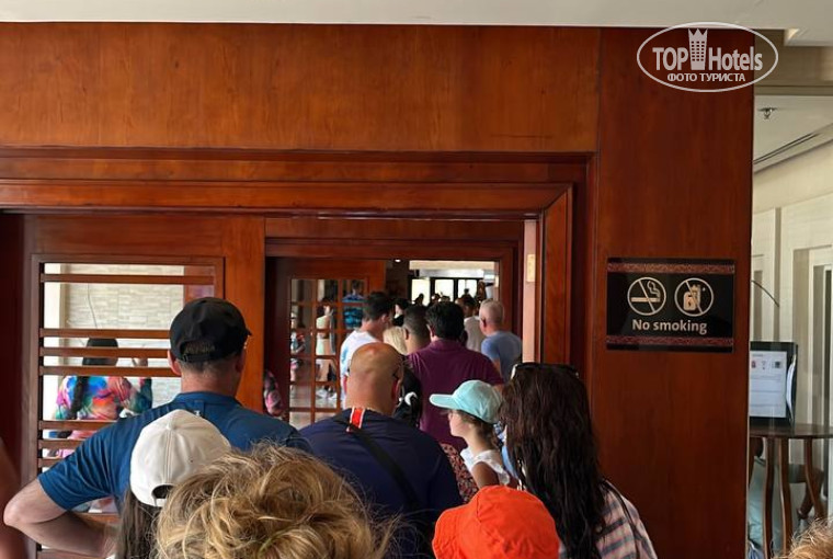 Давайте сразу к фактам. Я был в Египте около 30 раз. В пятерке первый раз. Первый раз ОТРАВИЛИСЬ с женой в столовой. Не привереда, отдыхаю в спартанских гостиницах и никогда не травился не смотря на более простое питание. Зубы чистим только бутилированной водой. У жены была диарея, у меня диарея и температура. 3 дня лекарств +сухари с чаем. И лежи смотри телек ни в чем себе не отказывай. Но извините, когда стоимость тура более четверти миллиона - ну такое себе. Разнообразие блюд больше чем в тройках и четверках, всегда есть рыба, курица и говядина. Штурм кофейного аппарата утром — это обычное дело, ждешь в среднем 10-12 минут. Кофе зерновой, но машина настроена так что в чашку наливает 5-7 процентов кофе далее льется вода или сухое молоко. Очень часто просто нет чашек- их просто не успевают мыть - берите миску из-под йогурта (ну а что делать то). Очереди в столовую в обед и вечером - просто взгляните на фото - кроме того, множество столов рассчитано на большие египетские семьи (6-8 человек) и их иногда будут пропускать вперед вас, так как столов под семью из 3-4 человек просто нет. Они к столику для двоих просто ставят еще 1 или 2 стула. Египтян отдыхает там много, но в отличии от предыдущего отеля - детей на столах в обуви видел только 2 раза. Везде есть щипцы, но египтяне часто берут выпечку руками, а потом кладут ее обратно в корзину. Посуду моют нормально, но столы все жирные, все прилипает. Несмотря на суету официантов, они не успевают от слова совсем. Мы отдыхали в августе и загрузка отеля на 100%, при такой загрузке нужна как минимум еще такая же столовая чтобы человек мог спокойно поесть. Был случай, когда мы заняли стол и я охранял 3 стула, пока жена и дочь набирали выпечку и кофе. Египтянин подошёл и просто потащил один стул к своему столу, на что я ему парировал и сообщил что все 3 стула заняты, через минуту он снова подошёл и молча потащил стул, я ему уже на пальцах объяснил вместо английского. Это не помогло, через 2 минуты он снова хотел утащить стул, пришлось встать и отгородить паренька. Про наглость поведения Египтян в очередях писать не буду - дикие люди всякое желание возвращаться после этого пропадает. Несмотря на ситуации, описанные выше, хочется отметить работу персонала, по ней остались положительные эмоции: повара готовят вкусно (правда насладиться этим нам удалось лишь отчасти), официанты стараются разместить всех, уборка в номере у нас была на хорошем уровне.