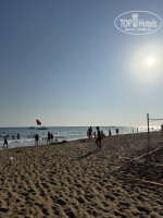 Шикарный, широкий пляж и огромным количеством лежаков. Можно прийти на море в любое время и там будут лежаки, не на первой линии, но будут. Песчаный пляж. Очень комфортный заход в море, без гальки и камней, достаточно долго нужно идти от берега, чтобы не доставать до дна. Для детей идеально. Рядом прокат водных развлекух: парашют, банан, ватрушка, гидроцикл и прочее. Играют в волейбол.