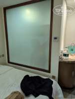 Полупрозрачное окно между номером и ванной немного смущает, просвечивает. Проблематично при отдыхе с детьми, на мой взгляд.