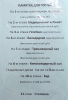 ПИТАНИЕ - питание вообще на высоте. Под столовую отведён весь 11 этаж. Конечно такого разнообразия, как в Турции, нет, но всё вкусно и питательно. Правда фруктов было маловато. Что самое интересное - в разных залах могут быть разные фрукты. Времени для приёма пищи сначала показалось маловато отведено, но потом втянулись :)))