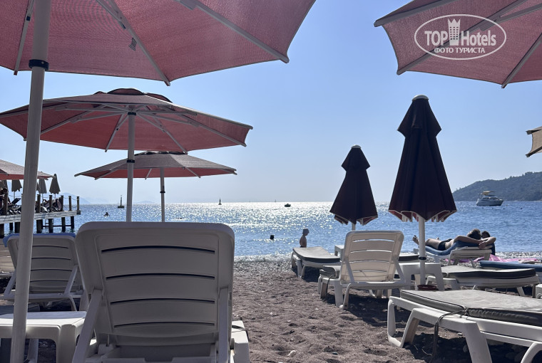 Отдыхали с семьей в конце августе 2025 года. Отель понравился, очень удобное расположение до море 3 минуты пешком, есть свои лежаки но много сломанных, полотенца для лежаков выдают на ресепшин. Из минусов нет душа на пляже чтобы после купания ополоснуться, но мы пользовались соседним от другого отеля. Завтрак с 7:30 до 09:30 обычно омлет, отварные яйца, жареные сосиски, огурец, помидор, оливки, 2-а вида сыра, колбаса. Обед с 12:30 до 14:00 суп, рис, кабачки, перец, наггетсы, говяжьи колбаски или курица. Ужин с 18:30 до 20:30. Мяса и рыбы мы не видели.Из фруктов давали арбуз или яблоки. Вода только из кулера. В баре пиво, вино белое и красное, пепси и спрайт. В номере ловил wi-fi от отеля (бесплатно), также можно подключится к сети отеля Diplomat тоже бесплатный интернет и ловит очень хорошо. Сейф платно. Балкончик со стульями и столиком. Ездили из поселка в Турунч в Мармарис на водном такси стоит 350 лир с человека, если на машине на 4-е человека то 1000 лир., также ходит маршрутное такси 90 лир с человека(с 8:00 до 22:30) но забита полностью. Советуем съездит на морскую эксурсию 5 бухт в 10 отправление и в 17-00 возвращение, стоимость с питанием 25$ с человека, если с напитками то 30$.
