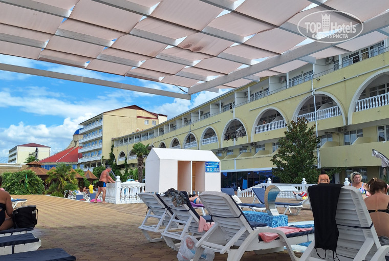 Понравилось в отеле все, кроме питания. И как говорят отдыхающие , кто ездит каждый год, все хуже и хуже. Думаю возвратных семейных туристов отель будет терять именно из-за питания. На завтрак нет ни морсов, ни соков, ни блинчиков,. Ни огурцов ни помидор! Дети не пьют на завтрак чай и кофе , вообще о надо это учитывать.Впервые с эти столкнулись, даже в отсталых отелях уж зелень всегда есть. Фрукт только один вид и только на ужин, и это на юге! Не выращивают видимо ни винограда ни яблок ни груш у нас на югах. Есть вип питание, с доплатой 1700 с человека , на семью из троих за 10 дней рекомендую все таки взять. Иначе чем кормить ребёнка. Я не понимаю. Мы перешли на третий день на вип зону. Но когда сама путевкам недешевая и еше на месте заплатили . вышло что лучше брать отель сразу на все включено. Единственный плюс нашего отдыха это близость к морю и красивая территория, больше сказать не о чем. Если вам надо отправить сюда пожилых родителей, где диет питание и нет крутых подъёмов, то тут самый раз. Вот я своих точно отправлю сюда. Но с детьми нет.нет подогреваемого бассейна детского, тоже минус. Хамам не работает. Анимация ненавязчивая, это по мне. Не надоедают. Лежаков хватает всем , бегать утром занимать не надо. На територии работает кафе , но это не кафе это бар, перекусить там нет ничего одни коктейли. Хотелось бы все таки зону с кофе и десертами. В отеле есть своя фруктовая лавка, удобно немнадо бегать за территорию. Цены такие же как в посёлке.