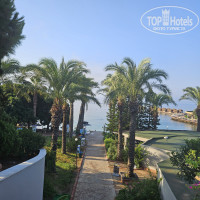 6 Номер и территория. Второй год подряд берем семейный супериор. Это 2-х комнатный семейный номер в 60 кв. в основном здании. Очень удобно, комнаты большие, в каждой ванна. Очень хорошая система кондиционирования. Ну и прекрасные виды на море и соседние острова, они умопомрочительные! Эту картинку надо видеть и мы ее наблюдали 2 недели подряд. Даже не передать словами как прекрасно отель расположен и как красива вся территория. Территория зеленая с соснами и цекадами, много цветов, есть места где уютно расположиться в тени без палящего солнца.
