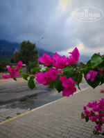 В отель нас привезли около 20.00. На рецепшене работают русскоговорящие ребята. Отношение хорошее. Оформили быстро, надели браслеты. Детям браслеты детские😊Два корпуса. Нас заселили в главный, на второй этаж, с видом во внутрь между корпусами. С балкона в одну сторону море, в другую-горы. С заселением дело случая, везения. Могут заселить с видом на кладбище. Но это ни чуть не хуже. Кладбище не как у нас, в России. Огорожено забором, с очень красивыми хвойными деревьями, платанами.И потрясающим запахом хвойных. Гуляли вокруг с мужем каждый вечер. Тишина, стрекочут цикады, летают летучие мышки. Чемоданы нам помогли донести. Очень приветливые ребята, всем помогут, покажут, подскажут.