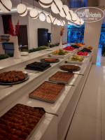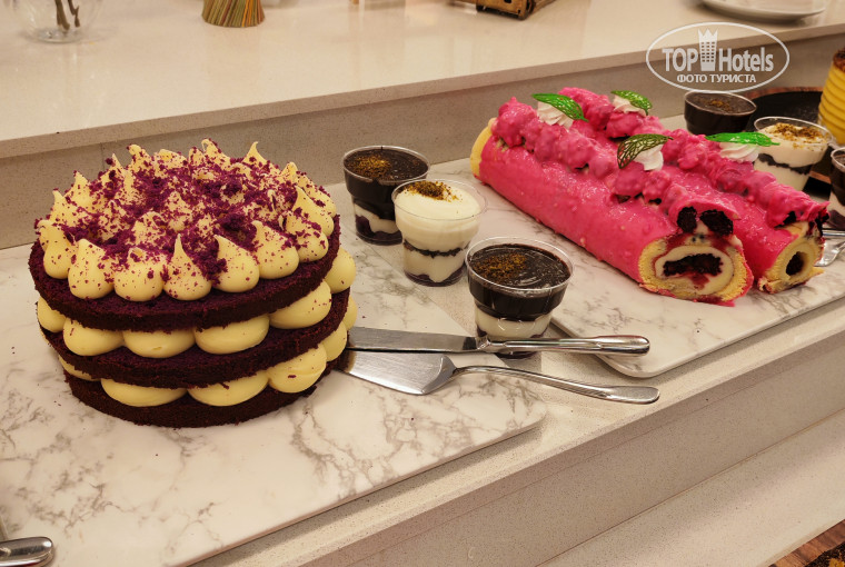 Сразу скажу, что народу тьма. Но места всем всегда хватало. Либо в ресторане, с кондиционером, либо на улице у бассейна, на душном воздухе. Периодически, действительно, очередь за едой возникала. Но не критично. В предыдущих отзывах люди писали, но скорее всего речь шла о блюдах с мангала. Готовится это на улице. Там очередь сумасшедшая. Рыба, ребрышки, отбивные, курица, луковые кольца. Все это там готовят. Один раз за 2 недели были осьминоги, огромные рыбы, какие-то суши, по-моему. Если вам это очень нужно, то можно и постоять. Мы не брали, не стояли. Спокойно ели в ресторане. Там еды полно. Выбор на любой вкус. Есть абсолютно все. Картошка в разных вариантах, макароны каждый день разные, рис, мясное. И курица, и говядина (очень вкусная), и рыба (каждый день или через день),очень вкусные куриные субпродукты. Овощные рагу разные. Очень много солений. Овощи свежие в салатах и не только. Всего не описать. Выпечка - это вообще отдельная сказка. Столько сладостей я не видела в турецких отелях.Это просто, как произведения искусства. Торты, пирожные. Много, очень много. Особенно на турецкую ночь. А самое главное, нереально вкусная выпечка.