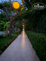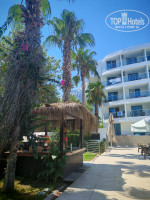Территория отеля очень уютная,ухоженная, небольшая. Кто-то в отзывах писал, что не убираются, не ухаживают. Это не так. В течение всего дня ходят с метелками, швабрами. На аллее к морю, да и везде на территории, даже опавшие лепестки цветов выметают начисто.