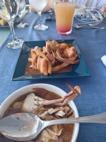 По морю. Оно было холодным, нам не повезло, мочили ножки не более того. Очень красивый вид из бара на воде.