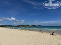 Общественный, идти минут 10 мимо магазинов и кафешек. Хорошее теплое море, чистый приятный песок. В воде загончик, в котором можно купаться, иначе свистят и выгоняют. Нас не напрягало. Первые дни море было после тайфуна - отличные волны. Потом успокоилось. После обеда становится мелко, у дальнего края загончика глубина делается примерно по пояс. Так что лучше ходить с утра. Лежаки не брали, привезли с собой подстилку и кидали под деревом вместе с вещами. По сути и не сидели там, все время были в воде.