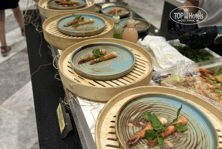 Еда все очень вкусная и изысканная, нет намешанных каких то сумасшедших намешанных салатов. Все прям достойно. Пообедать можно, как в главном ресторане, так и в ресторане на пляже. Причем это будет не перекус, а полноценный вкусный обед.