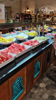 Ночью тоже есть зона, где есть супы, салаты, мясо.