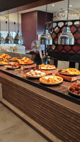 У малого бассейна, что между корпусами 2,3,4 есть кондитерская. Работает с 15.00 до 17.00. Там дают пирроооженые, напитки (в том числе и холодное кофе), мороженое разных видов из лотка. Скребком достают.