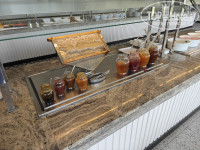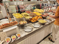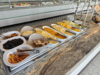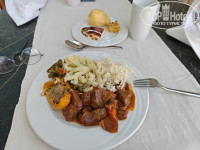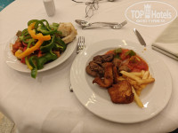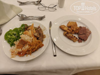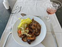 Три вида вина, включая розовое, пиво. Огромный выбор мяса, рыбы и вообще, можно с ума сойти от изобилия. Всё вкусно. Претензий к ресторану ноль. Рейс опоздал, приехал в 1 ночи - ресторан был открыт (!), покушал что-то.