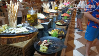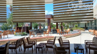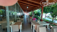 Просторный лобби бар - можно посидеть как внутри в прохладе , так и на улице - на улице всё очень красиво обустроено , вечером посидеть с напитком и сигареткой самое то (получаются красивые фотки на фоне подсвечивающегося разными цветами фасада и подсвечиваемых деревьев) . Понравилась открытая терраса в ресторане - для курящих . И пожалуй главная фишка отеля - это Бриз - снек бар . Кроме того , что он работает круглосуточно , ещё и очень классно расположен - можно сказать прямо на пляже . Сидишь в тени под навесами и любуешься морем ! По территории несколько холодильников с водой и айраном. Ресторана а-ля карте в этом году нет . Ну нас это не сильно и парило . И небольшая ложка дёгтя - даже не ложка , а так , ложечка . Очень не хватает туалета возле Бриз ресторана-бара. По сути , на всей территории , только один туалет возле гёзлеме , если не брать в расчёт туалеты в основном здании . Очередей конечно нет , но был момент , когда в нём что-то ремонтировали (недолго , но тем не менее) и приходилось бегать в основное здание.