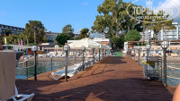 Пирс не очень большой , но удобный - лежаки , зонтики - всё достойно . Плюс на пирсе две кабаны . Есть две лестницы для спуска в воду . Для любителей понырять с пирса - это увы ! От слова СОВСЕМ ! Пирс со ВСЕХ сторон обнесён верёвками ! Как для нас , так это плюс - никто не прыгнет на голову когда плаваешь возле пирса . И за этим внимательно смотрят спасатель и охранник - если кто-то умудряется прыгнуть с пирса , они тут же приходят на пирс и делают внушение - низзяяя !