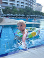 Это основное, что лично нас не устроило. А так про отель: основной контингент - европейцы (англо- и немецко-говорящие), все очень много курят обычные сигареты. Идешь толпой среди аттракционов, а рядом мужик сигаретой машет и в лицо детям. Лежишь на лежаке - рядом прямо при детях курят. Отель большой, народа очень много. Завтрак и ужин только в одном месте, на обед открываются дополнительные снек-бары. Но вот в главном ресторане, особенно в час пик очереди. Самые большие очереди человек по 5-10 за блюдом дня (которое иногда меняется) и за макаронами с картошкой фри. Утром за яичницей, которую при тебе готовят. Напитки приносят официанты, но в час пик ты можешь его не дождаться или физически рукой ловить. Как-то не выдержала, пришла в бар, где официанты напитки получают, там мне отказались налить, но позвали "главного" и отчитали "моего" официанта. Была одна смена официантов хорошая, но другая... не дождешься. Так детских стульчиков много, все с детьми, чужие вопли никого не напрягают. Есть йогурты как местные, так и упаковках (вроде данон типа растишки). Мороженое есть, баночки с пюре детским (овощное и фруктовое), микроволновка и погружной блендер. Вот пюре и блендер впервые увидели в отелях, до этого погружной блендер с собой брали. Но сейчас уже дети все едят, так что не брали, но вдруг кому важно. Супы были всегда только двух видов: всегда один из чечевицы, второй разный, но на любителя (типа томатный со специями или с перцем и специями). Каши недоваренные: один раз взяла манную, показалась горькой, не стала есть. Второй раз ее взяла - уже нормальная была. Т.е. в первый раз была на кислом молоке что ли. Овсяная и рисовая - хрустели на зубах, несколько раз пыталась. Дети если в основном молоко с хлопьями, печенье, пирожные, фрукты, макароны, картофель фри и курицу, огурцы, мороженое. Достаточно много баранины... И очень много женщин, замотанных с головы до пят в религиозную одежду, русскоговорящие такие тоже были. Возможно, отель нацелен на их религию, что свинины не было вообще, много баранины, говядины меньше, рыба была. Фрукты вкусные, пирожные посредственные. Из ближайшего и похожего были недавно в Sera, тоже в Ларе, но ближе к Анталии, туда не поехали, потому что нет горок и лунапарка. Но там было все вкуснее и разнообразнее еда, коктейли. На горках везде очереди, но наших детей устраивало. Горки работали с 10 до 12 и с 14-30 (вроде) до 17-00. Утром обычно все с детьми были на горках, а вечером шли на море. Лежаков всегда хватало. Хотя были надписи, что до 9-00 персонал убирает вещи с лежаков, занимать нельзя. Все равно все занимали лежаки и приходили намного позже. До пляжа пешком от выхода из отеля 5 минут. Каждые пару минут ездят машинки типа гольф-кары на человек 10. Сзади в багажник ставили 2 коляски и ездили, иногда пешком ходили. В детском аквапарке всего 3 горки, на самой интересной очереди, ясное дело. В лунапарке два аттракциона не работают уже 3 сезона, как сказал сотрудник, но они для детей постарше, не для наших. Самый популярный - машинки, там и взрослые катались, очень большие очереди туда были. Были уже батут, колесо обозрения, две детские карусели и один кораблик (туда-сюда раскачивается). Одна карусель сильно скрипит, кораблик один раз сломался. Очереди были только на машинки. Анимацией в силу возраста детей еще не интересовались, а до взрослого шоу в 21-30 не могли дойти, н