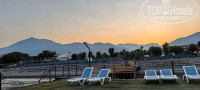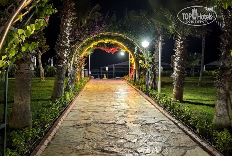 Территория не очень большая - центральный взрослый бассейн, рядом детский, за ним Мини клуб для детей с детской площадкой. если пройти дальше от отеля к морю, то слева небольшой аквапарк с тремя горками, сын в последние дни оттуда не вылезал. За аквапарком амфитеатр, где проходит анимация, ну а дальше пляж и море.