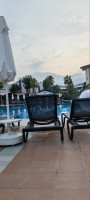 Есть отдельная кафейня (вроде Мимоза называется) там подают вкусный зерновой кофе, турецкий чай, мы там каждый вечер после ужина пили чай, советую. Рядом с баром у бассейна, вернее за ним кафе Виола, там где то с 11 и вроде до 17:00 дают мороженное, вкусное, также в обед какие то снеки готовят, но мы так и не успели попробовать.