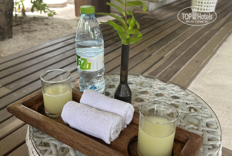 На пирс, по нашим ощущениям, нас вышел встречать весь персонал ресепшн. Поприветствовали, помогли с вещами, проводили до ресепшена, вынесли безалкогольный приветственный напиток и влажные полотенца. К чему я так подробно описываю такие, казалось бы, мелочи? Персонал отеля настолько приветлив и клиентоориентирован, что в тот момент мне показалось, что ждали они именно меня). Нас заехало 3 пары, каждой индивидуально занималась отдельная девочка: рассказала всё об отеле, показала на карте, заполнила документы, помогла с подключением к WI-FI, уточнила, что заселение в 14:00 (прибыли мы около 10 утра), что мы можем воспользоваться душем и т.д. Всё это время мы не стояли за стойкой регистрации, а сидели вместе с ней на диване. Пока супруг подписывал документы, девочка сообщила, что наш номер готов. Честно, так меня еще нигде не встречали. 10 из 5.