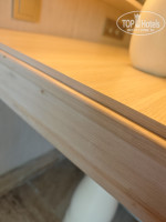 Нас перенаправили в другой номер, который чуть ближе. Но с уборкой и старьём опять проблемы. Нам сказали, что его убрали, но... Картошка и другая еда на полу, влажные салфетки и другой мусор на полу, в шкафчиках, в комодах. Напитки не положили. Полотенец не хватает, белье грязное, комоды грязные. Света мало, лампочки не все работают, а где-то их нет. Номер очень старый. Нового номерного фонда нет, все фото на сайтах старые (и выглядит все хорошо, но на деле все по-другому). Максимум фото прилагаю.