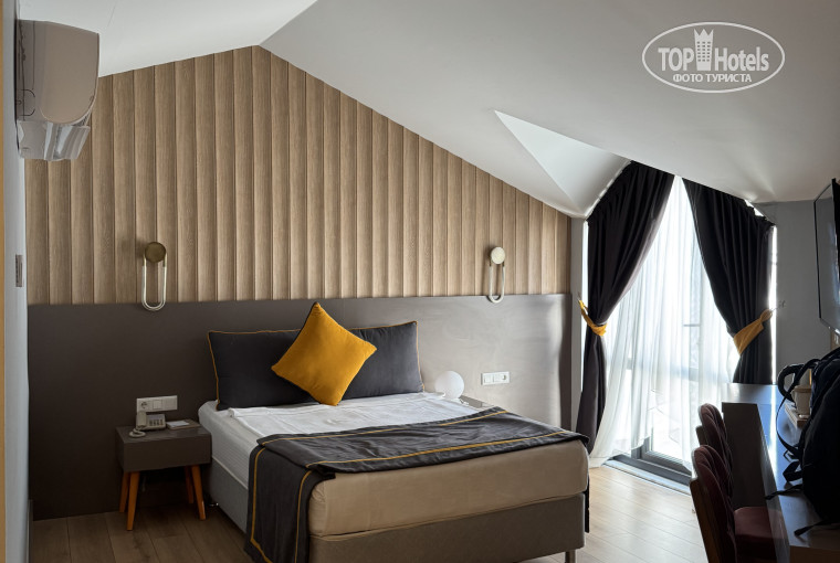 Плюсы: Номер просторный, тихий, с красивым видом на горы. Кондиционер работает без карточки. На балконе есть вешалка для сушки. В номере два стула и дополнительная раскладывающаяся подставка под вещи. Хорошо морозящий холодильник, в нем была вода. В душе стояли гели, шампуни, кондиционер для волос, мыло, ватные палочки и шапочка.