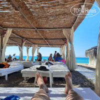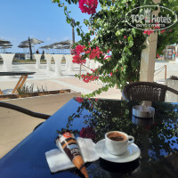 Бар на пляже. С 12 до 16 можно обедать не отходя от солнца. Выбор, конечно, меньше чем в основном ресторане, но имеются и овощные нарезки, и просто овощи, также рыба гриль ежедневно, можно самому делать бургеры, паста с соусами. В холодильниках помимо воды стоит айран, есть автоматы с соком. Сок, кстати, не юппи. наливают из пакетов Тетра-пак, в общем вкусно. Бармен делает коктейли. если в списке нет привычных, говоришь бармену, он сделает как тебе надо. Главное - улыбка. Из спиртных напитков не только турецкие, есть Просекко, бренди, вермуты. Но надо напоминать. Если просто тыкать пальцем в меню коктейлей, то и наливают попроще )))И замечательный кофе по-турецки!
