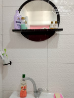 Минусы - краны в душевых с облезлой краской, в некоторых местах зелень, но вода всегда есть горячая и холодная, но резкое переключение в кранах. В ванной комнате под полотенца мало крючков. Один маленький(!) крючок под три полотенца. А если номер на три кровати, то куда повесить шесть полотенец? В некоторых номерах, в ванной комнате, нет разделительной ширмы между душевой и унитазом. В нашем номере она была! В ванной комнате в зеркале при росте человека 164 см видно только макушку и лоб... Шторы и окна нестиранные и немытые со времен начало сезона. Стены в номерах подкрашиваются и видно разницу.