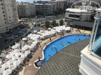 Пляж ужас, камни , булыжники, ветер, сильные волны сносило). До пляжа идти через дорогу минут 12-15 , а отель заявлен как 1 линия, не фига. Питание хорошее, бар круглосуточный, как минимум это самый большой плюс отеля. На крыше есть веранда, можно посидеть покурить кальян, красивый вид. Номера: сначала дали номер для обслуги, с низким потолком и без балкона, муж еле вписывался… на утро поменяли оперативно слава богу. Рядом с отелем много магазинов, аптек. В отеле хорошая анимация, очень разнообразная , детям хорошо, и взрослым. Хороший был фотограф, цены приемлемые. Ездили на экскурсию в море на пиратском коробок, понравилось. Ходили пешком до центра, кушали в кафе, очень вкусно ) цены приемлимые на тот период. Но в турции влажно как и в Сочи, не моя страна, из за климата мне не понравилось там вообще. Для себя я эту страну закрыла, но уверена что в других городах , где есть песочные пляжи и действительно первая линия, будет хорошо. Мне больше Египет , моя страна. Бюджетный отель, хоть и 5, но имейте ввиду 2 отеля, если не третья ) через дорогу и под мостом идти до пляжа. Это самое фиаско, хотя отель мне рекомендовала ТО. Боле думаю нечего добавлять )