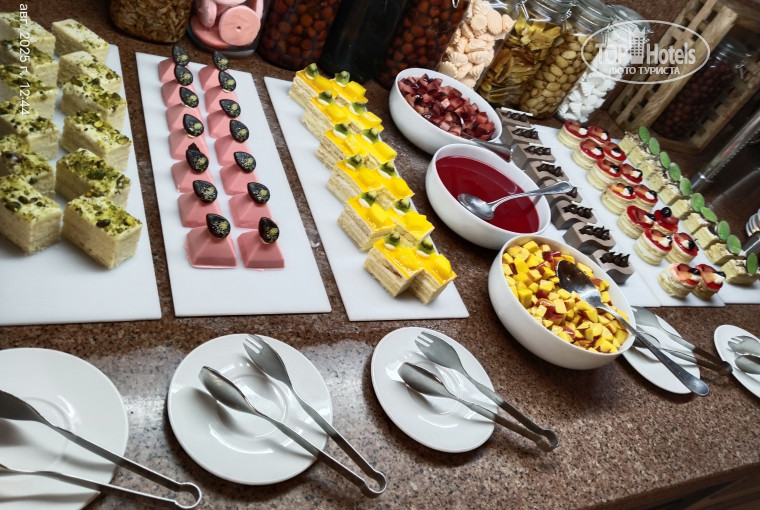 Еда: Основное меню мне не зашло. Если у вас нет проблем с жкт, то вам скорее всего понравится. Я же предпочитаю более пресную - отварную, запеченную, с меньшим количеством специй еду. Как говорится все фломастеры разные, у каждого свои предпочтения. Здесь даже нет обычных отварных макарон- обязательно обжаривают. Хотя в отеле заявлена возможность обговорить свое индивидуальное меню. Но для этого надо хотя бы знать немецкий или английский. Я дитя СССР, нам иностранные языки не нужны были. А потом уже было поздно. Учить надо в детстве. Но вот за что респект поварам этого отеля так это за десерты! Полный восторг!!! Есть с чем сравнить. Здесь невероятное разнообразие. Прямо гастрономический оргазм!
