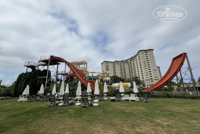Основной бассейн огромный, все влезают, с утра лежаков хватало всем. Хороший аквапарк, но там лежаки надо занимать с самого открытия.Территория отеля большая и частично ухоженная, отель достаточно старенький....
