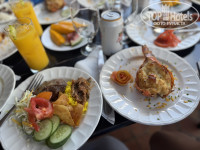 Завтрак- омлет из порошковых яйц, и также иногда глазунья была, фасоль консервированная, колбаса 2-х видов (только название от колбасы), сыр неплохой, много хлеба, булочки, батон, вкусные гренки, картошка в мундире, жареное тесто, рыбные шарики из рыбы и муки, сухие завтраки, сухое молоко, из фруктов папайя-очень вкусная, гуава, ананасы сухие и жесткие, с тайскими не сравнятся), оладья и топинги к нам, манговое варенье, мед