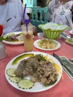 Обед- жаренная рыба (жарят при тебе), но стоять 10-15 минут, жаренная свинина, бывает я ждала и 30 минут, очень всегда большая к ней.