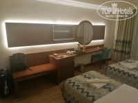 Заселение. От аэропорта до отеля ехали более 3 часов, мой отель был один из последних. Приехали в отель в 23:20. На респешен есть русскоговорящий сотрудник, проблем в коммуникации не было. Заселили сразу же, заполнил анкету, мне выдали ключ-карту и проводили в номер на 2 этаже. Фото номера прилагаю. Номер уютный, опрятный. Чаевые не спрашивали, я тоже никому ничего не давал. В номере двуспальная и полутороспальная кровать, кондиционер, холодильник, телевизор, чайник все в приемлемом состоянии, все работает. Телевизор современный, поддерживает флешку, можно вечером смотреть кино или слушать музыку. В номере есть балкон. Ежедневно при уборке приносили 1,5 литровую бутылку питьевой воды. Еще, в ресторане стоит куллер с водой, если кончится, можно там набрать. Пляжное полотенце можно взять на -1 этаже в Хамаме, оставив в залог денежку. Я оставлял 500 руб. После, пляжное полотенце можно менять хоть каждый день. Я менял раз 6 за время отдыха. П в день отъезда сдаешь полотенце, и тебе возвратят залоговую деньгу.
