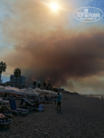 Пляж. Пляж находится в пешей доступности, можно идти обернувшись полотенцем, т.к. это совсем рядом. По надземному пешеходному переходу. С лежаками проблем не было, но это был сентябрь. В летние месяцы могут быть сложности. Море очень достойное для этого отеля. Есть две локации: первая - вырубленный вход в плите, и вторая - можно пройти по пирсу и спуститься по лестнице сразу в море на глубину. Пляжем я остался очень доволен. Многие пишут, что море грязное, в период моего отдыха я этого не заметил, все было хорошо. В период отдыха в Махмутларе были лесные пожары, но все это очень далеко от отеля. Только один день было дымно (фотографию с пляжа прилагаю), но все это не критично. Пожар быстро потушили с вертолетов, дым расселся. Пожары никак не повлияли на мой отдых.