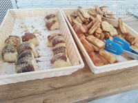 Доброго всем времени суток! Только вернулись из этого замечательного места. Интернет конечно кишит всеми отзывами от хвалебных до ужасных, но мы все-же решились поехать именно в этот пансионат. Купили путёвку, скажем так не дёшево, но оно того стоило. И так о бовсем по порядку. От Азова заказали трансфер водитель вежливы, машина хорошая. Челове встретил нас на перроне, помог с багажом и довёз до места отдыха. На ресепшене заплатили за завтрак (450 рублей с человека) и пошли поесть. В столовой конечно не хвалало места но стоило нам немного подождать и вот есть свободные места. На завтрак было предложено: свежие овощи, фрукты, каши, блинчики, оладьи, масло сливочное, выпечка, сосиски, колбасы, ветчина, сыр, омлет, кофе, соки, тёплое молоко, хлеб и т.д. Голодными не ушли.