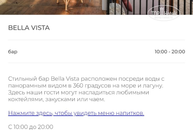 На границе лагуны и моря находится бар Bella Vista. У него потрясающий панорамный вид на Красное море. Это идеальное место чтобы насладиться чашечкой кофе или прохладным напитком и полюбоваться на прекрасный вид на лагуну и море.