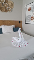 Особенностью отеля является защищенная сеткой от акул бухта-лагуна, в которой море достаточно спокойное. Для семей с детьми идеально. При этом лагуна дает возможность поплавать, глубина наступает на комфортном расстоянии.