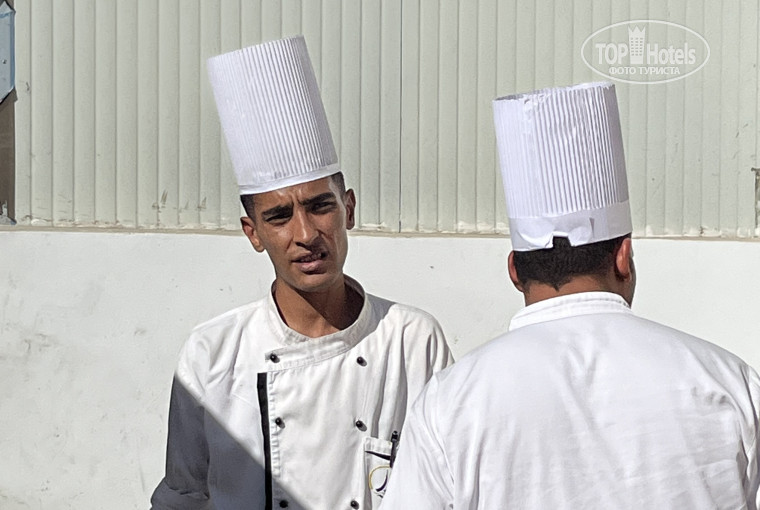 Хотя дней через 10 в отеле стало меньше людей и контингент разбавился европейцами и русскоговорящими,на кухне все равно не успевали убирать посуду и вовремя приносить еду. Утром даже придя в 9,30 на завтрак возле омлетов всегда была очередь! Повара и официанты обслуживали ужасно,особенно отличился повар на фото-он по непонятной причине игнорил и издевался над нами целую неделю,пока не сменился. Заказав на английском два омлета он все время переспрашивал,даже,когда мы выучили эти фразы на арабском. Старался сделать не то,что мы заказали,либо делал один омлет вместо двух,жена шла завтракать,а я еще ждал свой заказ. Я ему пригрозил,что пожалуюсь менеджеру,один день вроде обслуживал нормально,потом снова издевался. Увидев,что я сделал с него фото,стоя в очереди,он в этот день идеально обслужил нас. Я бы уволил его на месте руководства,обязательно будут и другие русскоязычные,с кем он поступит также,будут снова плохие отзывы. Я считаю,что этот парень не совсем здоров психически. Итак,снова о кухне и официантах.Отель был бы лучше,но тут младшее звено поваров и официантов все делает для того,чтоюы рейтинг отеля и упал и сюда не ездили люди. Старшая команда менеджеров работает отлично,старается все это вывести на высокий уровень,но одного их старания мало,нужно сменить половину персонала,так,как мы заметили,у них круговая порука и они обслуживают хорошо только немцев и некоторых других богатых иностранцев,остальных игнорят,либо издеваются. Моя жена с боем выбивала с них на обед и ужин стакан вина,который был положен нам по системе все включено. Они то наливали четверть пластикового стакана,то половину,в то же время несли за столик немцам полные стеклянные бокалы холодного вина. После жалобы генеральному менеджеру по персоналу на некоторых личностей, последние дни наш столик стали хорошо обслуживать,искать с нами дружбы.