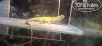 Территория небольшая, ухоженная. На рецепции игуана новая, молодая.