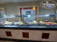 Стандартно, говядина, курица, рыба, паста, рис, картошка, овощи, один вид супа. Десерты в основном разноцветный бисквит (фото 3). Выбор фруктов нормальный. Когда надоедал вкус пережаренной в специях до черноты говядины или курицы, выручал детский стол. Морепродукты о которых пишут в отзывах (фото 4), ну таким даже салат не украсишь. Из перекусов мороженое и выпечка, фруктов как раньше на полдник нет. Кофейный автомат на одну чашку, к нему всегда очередь. Раньше не разрешали приходить в столовую в пляжной одежде, сейчас, если не хотите сидеть на мокрых стульях, приходите к открытию.
