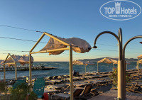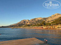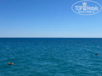 Пляж. Впервые я увидела настолько большой пирс с удобным лестничным входом в море. Сам пляж тоже песочный, единичные камни, которые быстро убираются. Глубина моря подписана у каждой лестницы, по которой спускаться в само море, что удобно для не плавающих людей. Мне нравилось заходить на 3.5 метра и плавать в сторону моря, поворачиваться к берегу и наслаждаться видом гор, особенно в момент заката. Солнце, заходящее за горы и освещающее море в момент захода, давало непередаваемое ощущение в душе полной гармонии и спокойствия. Еще нам нравилось встречать закаты на пирсе: момент восхода солнца также был прекрасен. Также я впервые увидела, как меняют воду специально насосом с глубины на берег, чтобы вода была чище.