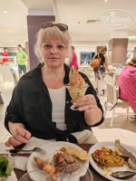 Здравствуйте, ценители отдыха в Тунисе. Хотелось бы добавить отзыв про двухнедельный отпуск, проведенный в данном отеле. Тур был приобретен у компании Express-Tours. Отдыхали парой с 13.09 по 26.09.2025 года. Перелет тунисскими авиалиниями из Санкт-Петербурга занял 4 часа. Отель находится рядом с аэропортом, поэтому трансфер занял 10 минут. Разница во времени составляет 2 часа (минус). Прибыли в отель по местному времени в районе 04 часов утра. У нас был оплачен номер категории стандарт, без вида. Ждать до 14 часов заселения мы не стали, и поскольку свободные номера были, то за номер с видом на море доплатили 50 долларов. Туристический сбор на момент заселения составил 12 динаров с одного за ночь, но оплачивается он максимально за 10 суток. Взяли плату в размере 240 динаров – 85 долларов, а 3 суток проживания сверху бесплатно. Данный отель, к сожалению, не пользуется популярностью у российских туристов, и, по словам гида, на момент нашего заселения в отеле на 400 заполненных номеров было всего 17 человек, прилетевших из России. По языковой речи можно было определить проживающих из Польши, Франции, Германии и арабских стран. Погода в это время прекрасная, +29°C. Кондиционеры ещё работали в номерах. Сами номера и мебель старенькие. Убирались ежедневно, постельное бельё сменили один раз, полотенца меняли регулярно. Мы привезли свои пляжные полотенца, поэтому не знаю, какой депозит берут за них при заселении. Те, кто бывал в Тунисе, знают, что грязновато в самих номерах, даже после уборки, грязновато в ресторане. Антибактериальные салфетки пригодились, т.к. тумбы в номере были со следами косметических масел. Полы, конечно, так себе по чистоте, но мы взяли старые домашние тапки и оставили их при выселении. (Халатов и тапочек в номерах нет). В ванной комнате есть дозатор с гелем для рук и дозатор в душе с гелем для тела.Шампуня нет, фен есть. На балконе сушилка, столик и 2 стула. В нашей комнате были 2 кровати (сдвинутые) и кушетка. Телевизор российских каналов не имеет. Зато на удивление есть бесплатный Wi-Fi по всей территории и на пляже. В утренние часы прекрасно ловит, в часы обеда и ужина -средне. Музыка начинает мелодично играть с 7 утра, обозначая начало завтрака. Далее в 10 утра уже включается на всю катушку, и аниматоры приступают к развлечению туристов до самой ночи. На время приема пищи музыка утихает. Наш номер был ближе к пляжу и напротив амфитеатра, поэтому из-за орущей ежедневной дискотеки спать раньше 12 ночи можно, только находясь без сил. Пляж- мелкий песок, заход в море песчаный. Отливы были постоянно вечером, но можно было гулять на мелководье и смотреть крабов, осьминожек, рыбок. Очки или маска приветствуются, днем можно также наблюдать подводный мир. Море в зоне отеля мелковато для взрослых и отлично подходит детям. Плавать спокойно можно вдоль буйков, но кто-то и за буйки с утра заплывал, пока катеров нет. Пройти метров 100 наверное до глубины. На мелководье туристы лежат в воде прямо на лежаках, на песке и довольны на 100%. Лежаки имеют мягкие матрасы. Еда в данном отеле удивила обилием морепродуктов. Ежедневно, кроме времени завтрака, готовили креветки, мидии, кальмаров и разные виды рыбы. Мясо любое, кроме свинины, в запечённом, тушеном и жареном виде. Пюре картофельное (не порошковое), макароны, рис, кус-кус, чечевица, нут и т. д. Овощи на любой вкус. Фрукты и сухофрукты, морож