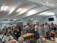 Отдыхал в санатории «Славутич», в сентябре 2025 года, по социальной путёвке. По прибытию на ж/д вокзал г. Симферополя, нас ждал автобус санатория (встречают только поезд № 028, обратно выезд из санатория в 10.30 час.) Для отдыхающих по социальным путёвкам – проезд бесплатный. В автобусе у всех прибывших фотографировали санаторно-курортные путёвки, для сортировки и расселению по корпусам. Отдыхающих по социальным путёвкам - высаживают у 3 корпуса, те кто оплачивал полную стоимость – у 1 корпуса. В 3 корпусе администратор как правило оставляет малоподвижных отдыхающих и детей инвалидов, остальных размещают: в 5, 6 корпусах (расстояние до столовой в 3 корпусе, около 1 км) и гостинице «Спорт» (расстояние 300 метров). Тем отдыхающим, которые начинают возмущаться – предлагают заплатить около 60000 рублей (зависит от номера), чтобы разместить их в 1 корпусе. Для купивших путёвки за деньги, тоже нет никакой гарантии, что их разместят в 1 корпусе (часто их размещают в других корпусах и гостевых домах, но питаются они в 1 корпусе и им приходится также много ходить). В столовой 3 корпуса (шведский стол) всегда много отдыхающих, готовят хорошо, но из дешёвых продуктов. Часто не хватает вилок, бокалов и мест за столами, в 1 корпусе – эти проблемы отсутствуют. Пляж: от 3 корпуса до дальнего хорошего пляжа идти минут 35, есть 2 бесплатных автобуса, но на последний рейс перед обедом иногда приезжает только один автобус, значит некоторым придётся возвращаться своим ходом. Место под навесом и шезлонги лучше занимать прибыв на пляж до 9 часов. На дальнем пляже мелкая галька и лучший заход в море, полотенце для пляжа дают под залог 500 рублей в корпусах проживания. Медицина: врач назначает не более 2-х бесплатных процедур по 5 сеансов, как правило это массажное кресло и ингаляции, а остальные за деньги и только в последнюю неделю пребывания. Анимация: только в 1 корпусе (более менее), в 3 корпусе – пародия на анимацию, в других корпусах её просто нет. Из хороших моментов хочу отметить работу официантов - молодых людей проходивших практику в данном санатории, они «жужжат» как пчёлки и стараются.