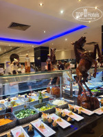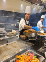 Еда:шикарная, на любой вкус, повара очень старались. Было и мясо(говядина, ягненок, баранина) и птица (курица, индейка) и морепродукты(крабики, креветки, кальмары), а также разнообразная рыба. Салаты, как и во всех отелях, паста, пицца, фрукты, а про выпечку я вообще молчу... Это отвал башки)). Персонал очень услужливый. Со столов убирают так, что я и не замечала, но все в рамках... Из под рук не вырывали. В ресторане чисто, прохладно.